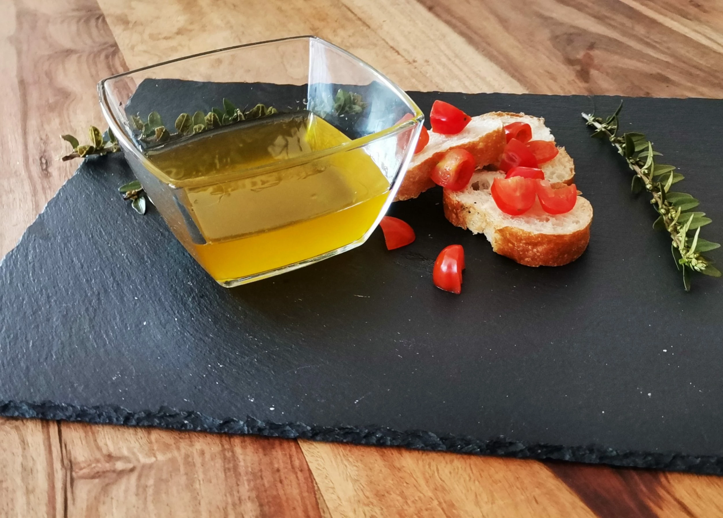 Das hochwertige Olivenöl wird in einer wiederverschließbaren Karaffe geliefert.