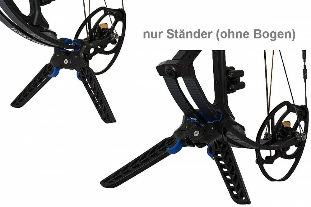 Die Befestigung des Bogenständers erfolgt am Wurfarm des Compoundbogen. Der Bogenständer wurde verstärkt mit Gummierung