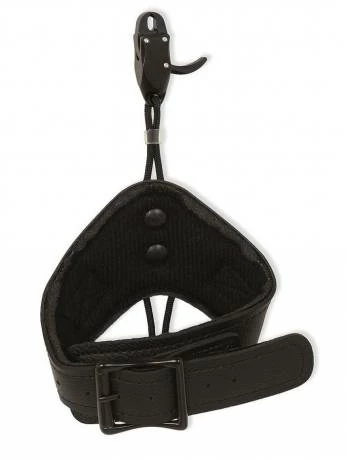 Zangenrelease mit Befestigung an einer Handgelenkschlaufe. Das Release wird mühelos mit dem Zeigefinger ausgelöst (am Hebel). Die Verwendung ist sowohl für den RH- als auch den LH-Schützen möglich.