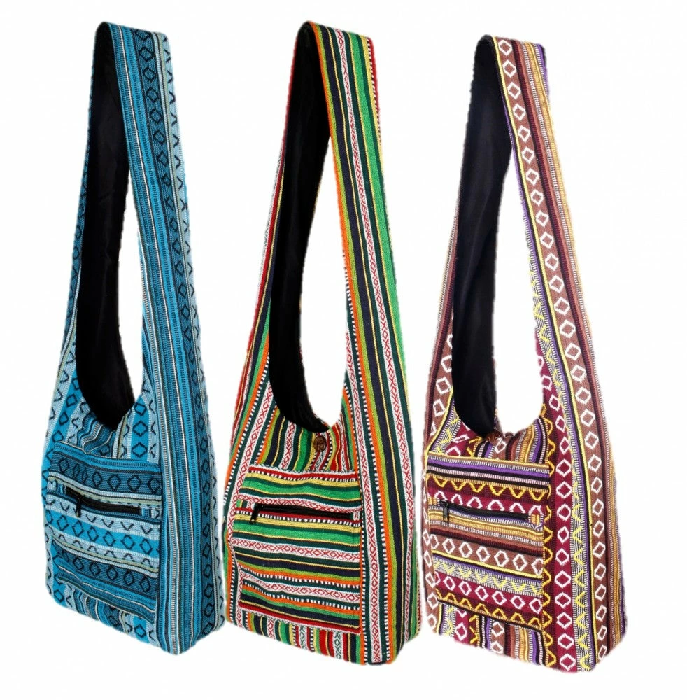 Diese schicke Shopping-Tasche im Hippi-, bzw. Boho-Style ist ein bequemer Begleiter im Alltag. Er kann sowohl als Handtasche genutzt werden, als auch als Shopper für tägliche Einkäufe. Das breite und feste Gurtband aus Baumwolle ist mit 10 cm sehr breit und verhindert somit ein Einschneiden beim Tragen in die Schulter. Die Tasche lässt sich mit einem Reißverschluß verschliessen. Ausserdem ist an der Vorderseite eine Aussentasche für Geldbörse, Schlüssel oder Handy. Ein modischer Knopf macht die Tasche zum Hingucker.