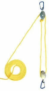 Seilzug, Flaschenzug von eduplay Dieser Flaschenzug kann z.B. bei Baumhäusern oder an Ästen befestigt werden. Der Flaschenzug transportiert alles mühelos hinauf, was oben gebraucht wird. So können sich Ihre Kinder das ständige hochklettern ersparen und Spaß macht es natürlich obendrein. Der Flaschenzug wir mittels eines Karabiners z.B. im Ast eingehängt. Der zweite Karabiner hält dan das Transportgut z.B. Eimer oder Korb fest. Daten: Belastbar bis 15 kg für Kinder ab 8 Jahren 2 Karabinerhaken 2 Rollen 5 m Seil inkl. Anleitung und Sicherheitshinweis verschiedene Farbausführungen (gelb, grün, rot, blau)