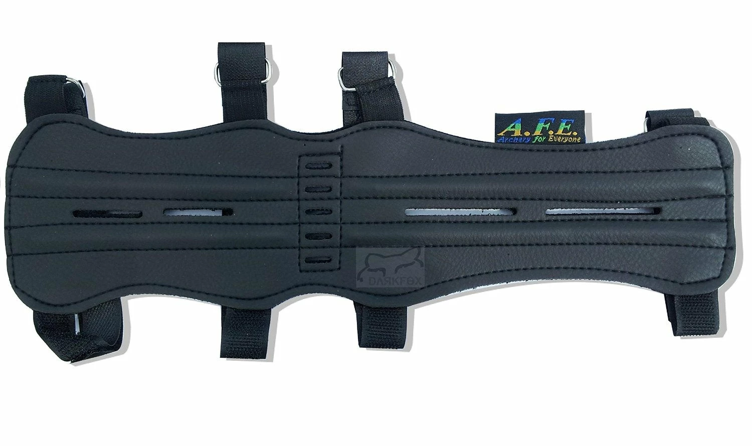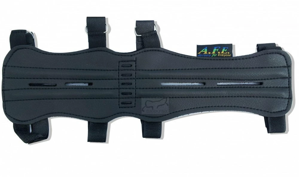 Langarmschutz mit einer Synthetic-Lederdeckschicht. Der Armschutz wurde mit Stabilisierungsstreben durchgezogen und mit Luftschlitzen ausgestattet. Aufgrund der langen Klettverschlüsse kann der Armschutz gut am Arm angepasst werden.