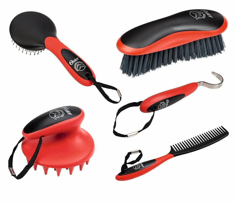 Oster Putzset für Pferde 5 tlg schwarz/rot