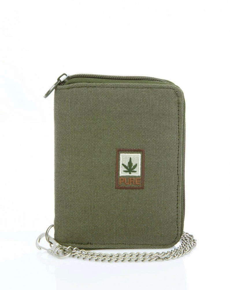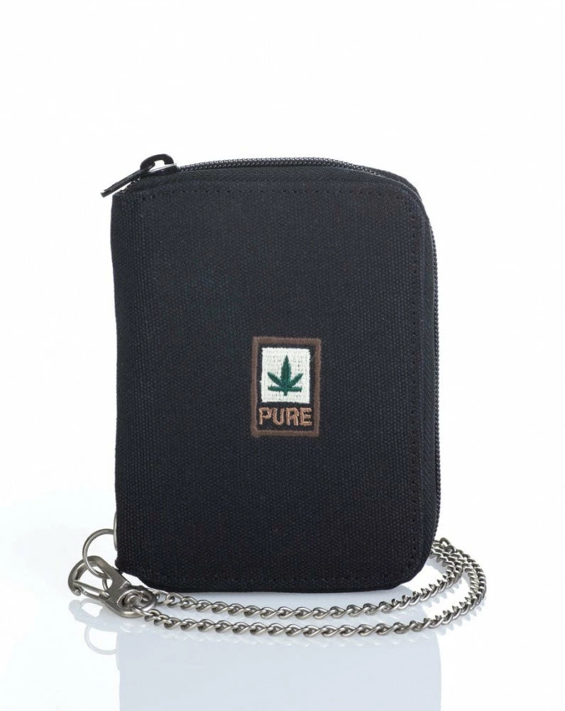 Im Innenbereich der Börse befinden sich acht Kartenfächer, zwei Steckfächer, zwei Geldscheinfächer und ein mit Druckknopf verschließbares Münzgeldfach. Zusätzlich ist die Böre mei einer 45 cm langen, stabilen Kette und einem Karabinerhaken versehen. Die Börse kann somit nicht so leicht verloren gehen und schützt vor Taschendieben.