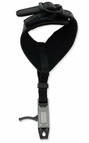 Release mit Befestigung an einer Handgelenkschlaufe. Die Verwendung ist sowohl für den RH- als auch den LH-Schützen möglich.