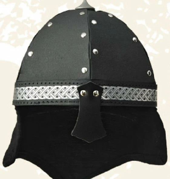 Helm Alamann Art. Nr.: 650 Aus hochwertigem durchgefärbten Spezialkarton gefertigt Verbindungen mit Metallnieten Nasenschutz aus echtem Leder Nackenschutz aus schwarzer Baumwolle. Passend für Kinder 6-14 Jahre