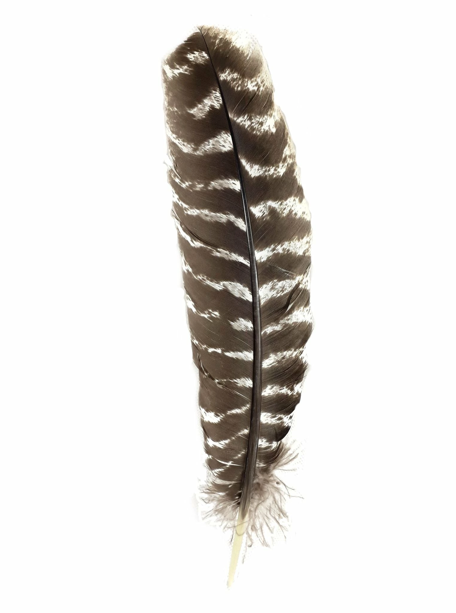 Diese Feder stammt vom relativ seltenen getigerten Truthahn. Die Federn lassen sich für Schmuckherstellung sehr gut verwenden. Aber auch Kenner verwenden sie als Räucherfedern, für Kostüme (Indianer) oder als Schreibfeder. An der Fahne weist die Feder das Tigermuster auf. Die Tiere werden nach strengen biologischen Vorgaben in Freiland gehalten. Die Federn sind etwa 30 cm lang. Bei größeren Bedarf können Sie mit uns gerne einen Rabatt vereinbaren.