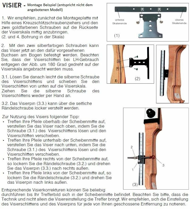 Dieses Visier mit langem Ausleger und Rändelschruabe eignet sich auch für den anspruchsvolleren Bereich. Der Visierschlitten ist leicht in der Höhe einstellbar und lässt sich präzise einrasten.